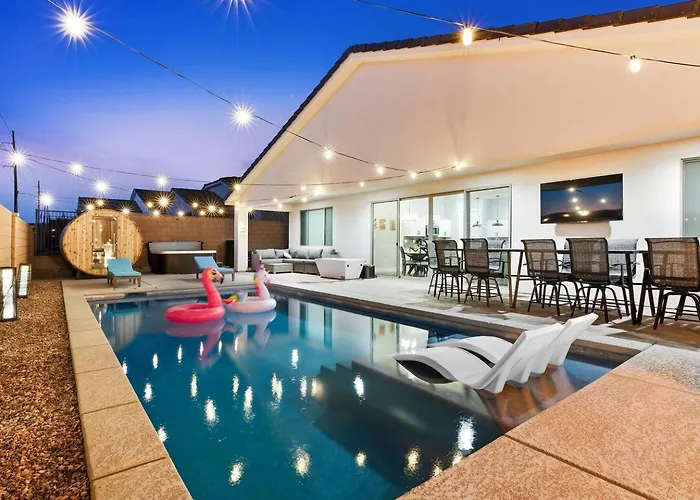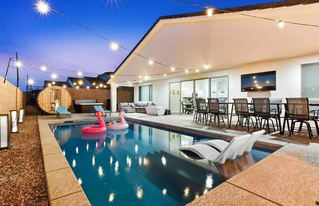 Situé à moins de 25 minutes de marche de l'Oasis Golf Club Canyon Course, Villa Heated Pool à Mesquite est un établissement intimiste doté d'une piscine privée, d'un jacuzzi et d'un sauna, garantissant un séjour relaxant. Offrant des vues sur la piscine, cette villa invite les clients à visiter le musée d'histoire de Virgin Valley, qui se situe à 4 km.